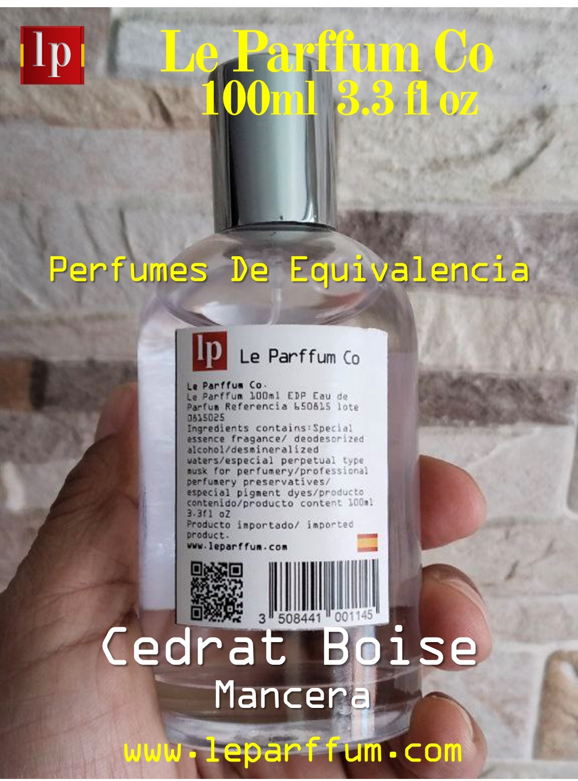 - Perfumes de equivalencia Le Parffum 100ml 3.3flOz presentación única.