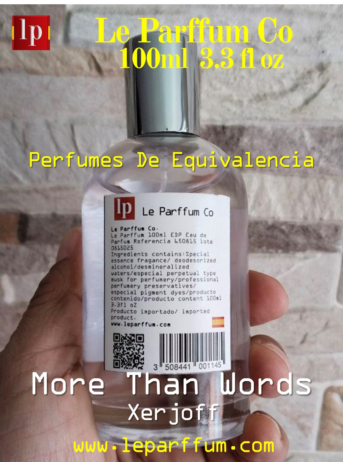 Línea de productos EDP Eau de Parffum. Fina fragancia Le Parffum equivalente a More Than Words Xerjoff